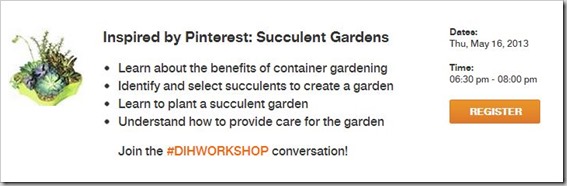 Inspired by Pinterest: Succulent Garden on Thursday May 16th, 2013 Time: 6:30 to 8 p.m.