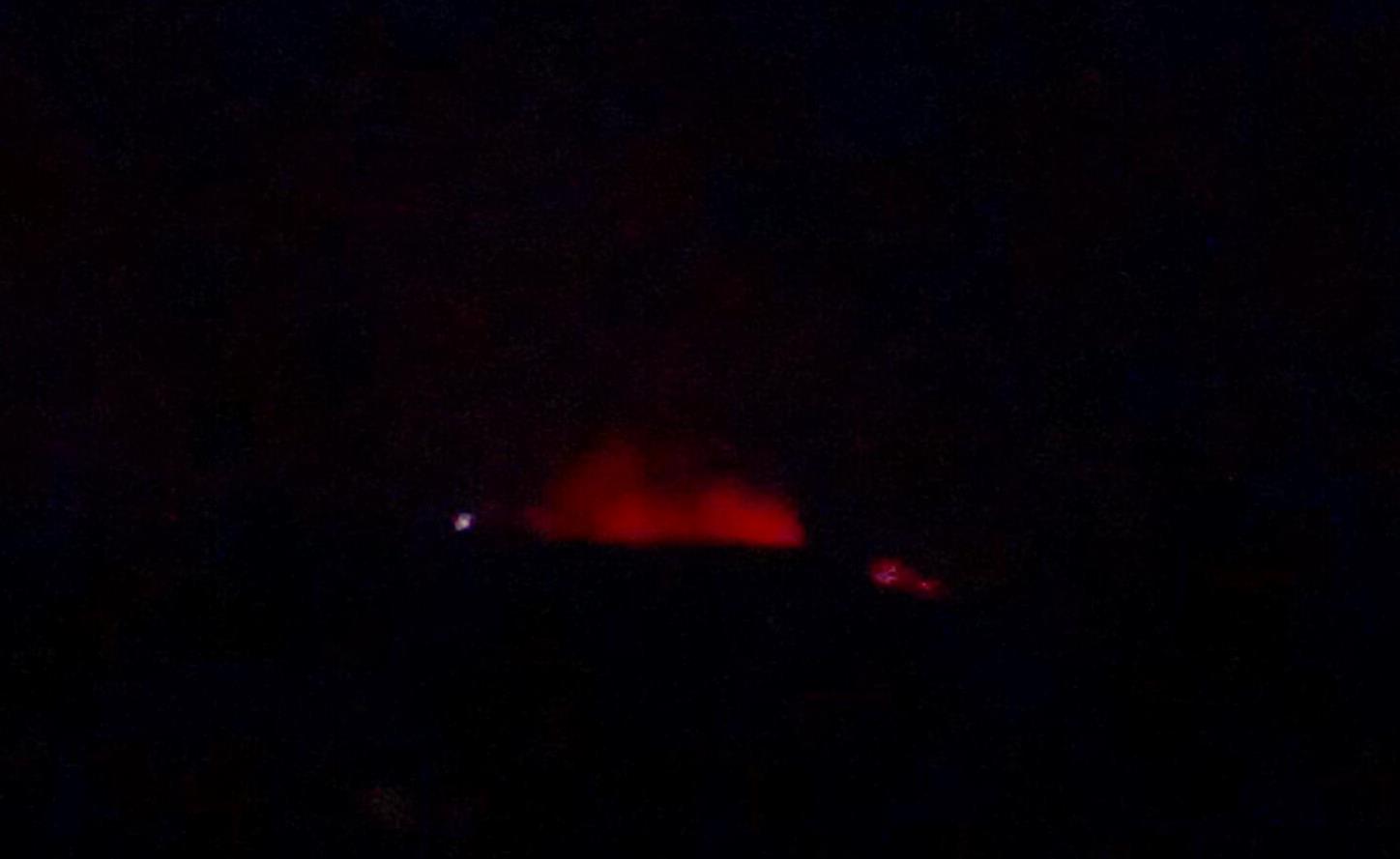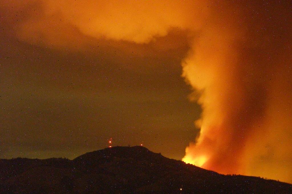 The above picture shows flames and smoke on the ridge of Mt. Diablo.