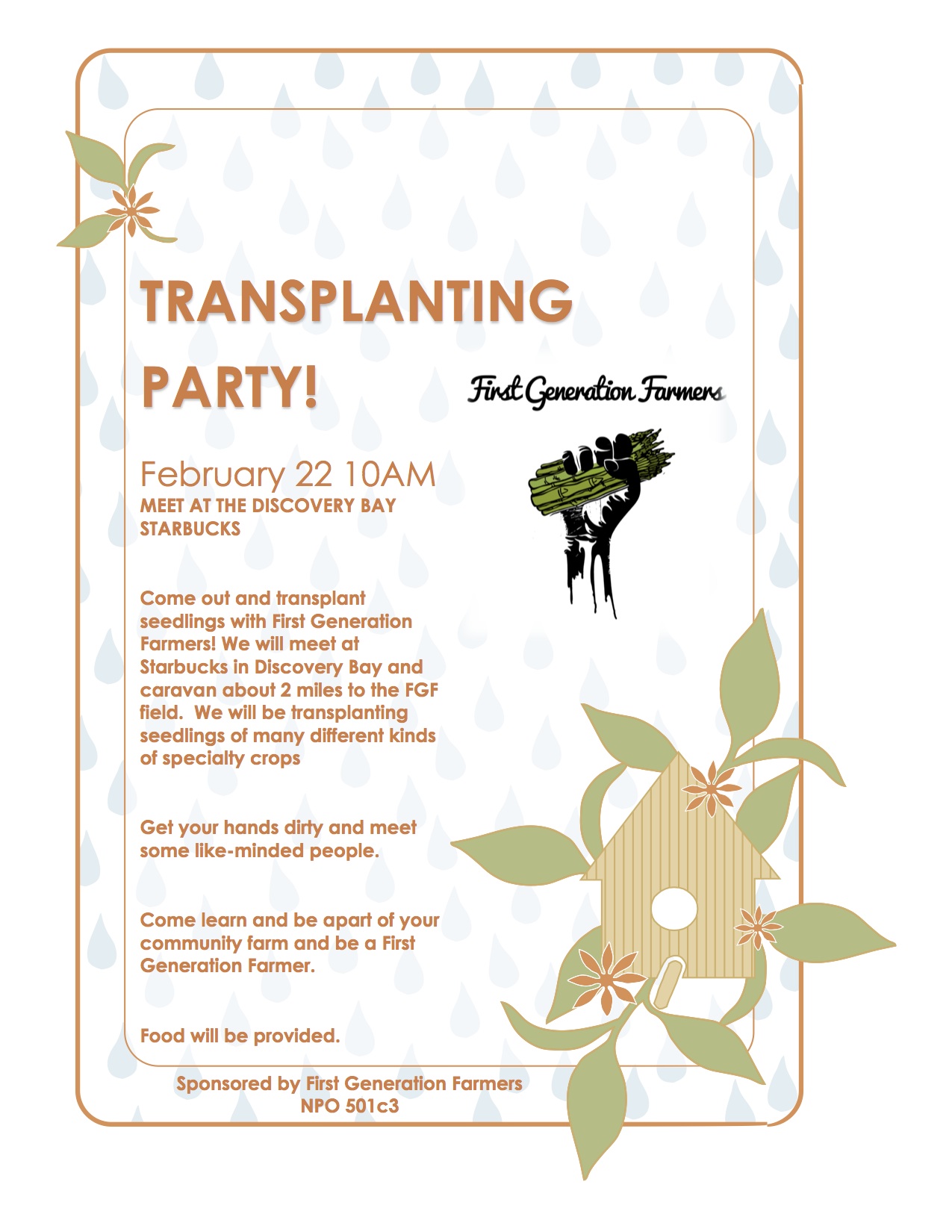 First Generation Farmers invites you get your hands dirty planting seedlings! Food is provided, see the flyer below for more details!